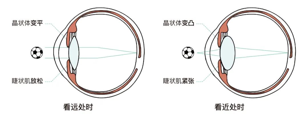 眼睛為了看近也清晰,是不能“放松”的,不僅不能放松,還需要努力地收縮睫狀肌,才能將物體的成像給拉回來,投到視網膜上。